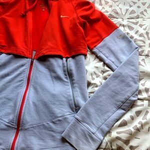 Colorblock red/coral and gray -Convertible hood Zip into collar. DRI-FIT