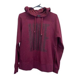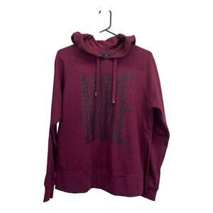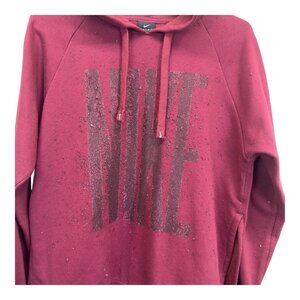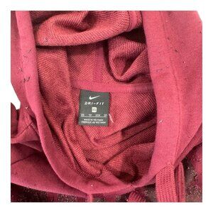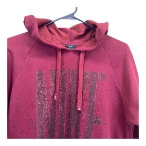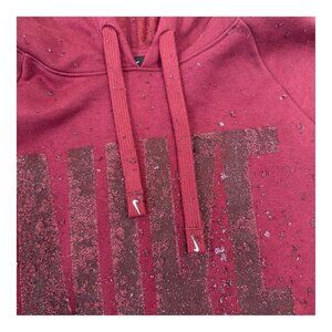 Nike Dri-Fit Pullover Hoodie Women XS Maroon Oversize Glitter Logo Sides Slits
