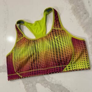 Nike Dri-Fit Racerback Athletic Sports Bra Womens Large Pink/Yellow Performance