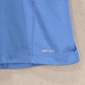The Nike Dri-Fit Racerback Running Tank in Cornflower Blue is a stylish and functional activewear top perfect for women who enjoy running, cross-training, or other physical activities. This tank features a built-in bra for added support, a comfortable round neckline, a pullover closure, and a racerback strap design. Made from a blended fabric of polyester and spandex, it offers stretch and moisture-wicking properties, making it suitable for all seasons. With its athletic fit and sports-themed design, this Nike Dri-Fit tank is a versatile and high-quality addition to any active woman's wardrobe.