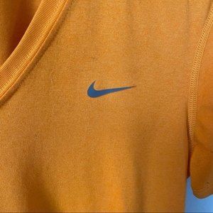 Nike Dri-Fit vneck Short Sleeve shirt Regular Fit in the color Orange. Great workout shirt or causal wear. Size Medium