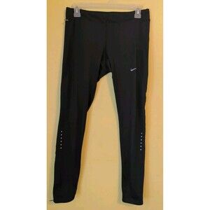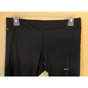 Nike Dri-Fit Running Athletic Leggings Womens M Black Side Zip Pocket Pull On
