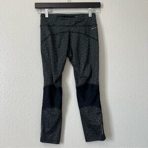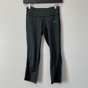 Nike Dri-Fit Running Capri Cropped Leggings Meteor Print Gray Black 749458, Size XS. Good used condition. First 2 photos are stock photos to show fit and detail only.