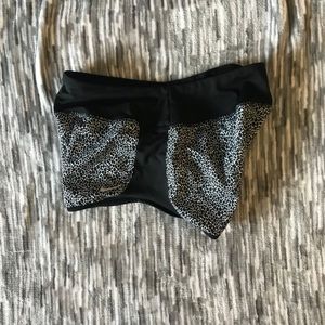 Nike Dri-Fit black and White spotted print. Worn only a few times and in great condition. Size Small/Petite. 100% Polyester. Waist band draw string is wound from being tied (as pictured).