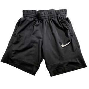 Nike Dri-Fit Shorts Boy S Standard Fit Black w/ White Swoosh Pockets Drawstring
