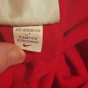 Nike Dri-Fit Size LT (Large Tall), red and white tear-away athletic pants. They are 100% polyester, were made in Indonesia and are machine washable.