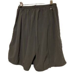 Nike Dri-Fit Size XL Gray Running Shorts. Gray with solid blue & white mesh striped side panels. Elastic waist with drawstring. Built in brief. Polyester/Spandex. Pockets, 20.5” long, 9” inseam.