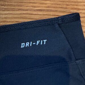 Black Nike Dri-Fit Skort in excellent condition. Great for running, pickleball, or tennis. Skirt overlay with built in shorts. Front side slit pockets. Small, back, center zipper pocket. Hidden tie waistband. Waist (when lying flat): 12 inches; Front length of skirt: 9 inches; Back length of skirt: 9.5 inches; Inseam of shorts: 2.5 inches.
