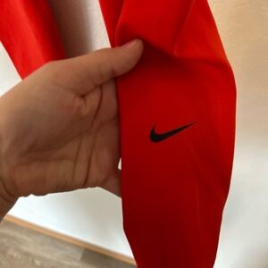 Nike Dri-Fit Small Blood Orange Leggings Black Ankle Logo