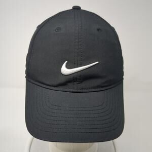 Nike Dri-Fit Strapback Baseball Cap Black One Size Adjustable Embroidered Swoosh
