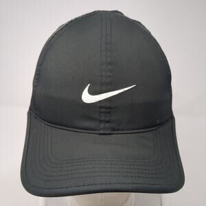 Nike Dri-Fit Strapback Baseball Cap Black One Size Adjustable Lightweight Swoosh