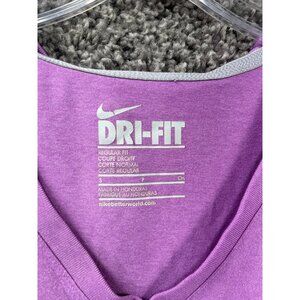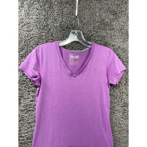 Nike Dri-Fit T-Shirt Women's Small Purple Cotton Classic Regular Fit V-Neck Tee