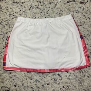 Nike Dri-Fit Tennis Skirt Size XS 0-2 Whit Coral Pink Geo Print Yellow Swoosh Logo