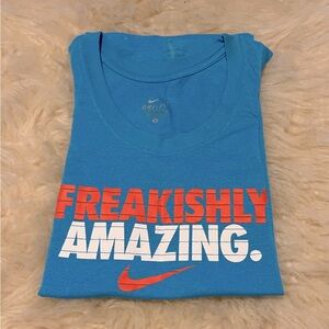 This is a beautiful top in a shade of turquoise blue, in great condition. It features the dri-fit technology for comfort and is designed x-long, to cover your backside lol, great to wear with leggings.