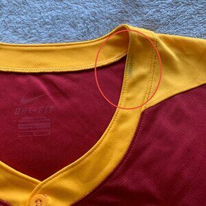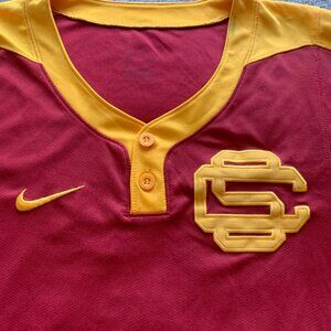 Nike Dri-Fit USC Trojans Player-Issued Batting Practice Jersey. Large. Embroidered, Lightweight. A couple of spots that may come out but I didn't put much effort into getting them out. Otherwise, in great condition. Tag reads Men's Large but please see measurements below before purchase.