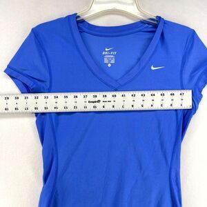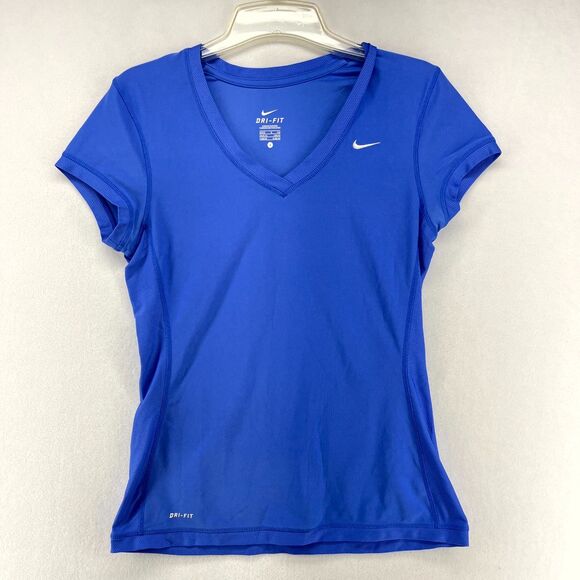 Nike Dri-Fit shirt, V-neck athletic top, ladies size S, purple workout shirt, white embroidered logo, breathable fitness wear, moisture-wicking fabric, stylish workout top, lightweight gym wear, comfortable athletic fashion, flexible fabric, casual sportswear, high-performance shirt, comfortable fit, premium quality fabric, trendy athletic wear, everyday gym top, versatile workout shirt, soft touch fabric, breathable workout fashion.