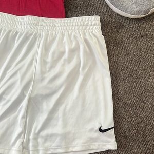 These lightweight Nike Dri-fit white shorts are perfect for working out, jogging around the neighborhood, sports, or to throw on with your favorite sneakers and sports team jersey to run errands!