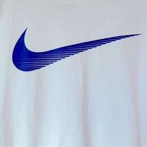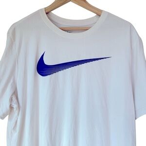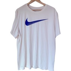 Nike Dri-Fit White Tee Royal Blue Swoosh Logo, XL