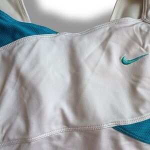 Nike Dri-Fit White and Teal Tennis Top with Spandex and Built in Bra size M