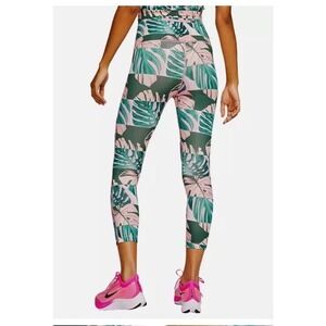 Nike Dri-Fit Women’s Leggings Crop Pink Green Tropical Print S spring active