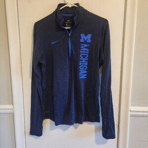 Nike Dri Fit Women's Medium Blue Long Sleeve University Of Michigan 1/4 Zip Top Shirt UM