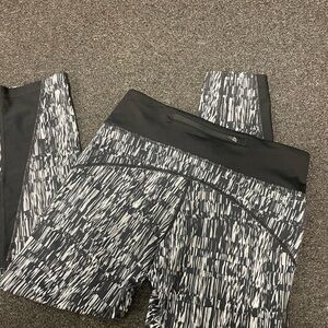 Stylish Nike leggings with a black and white pattern. Comfortable fit. Perfect for workouts.
