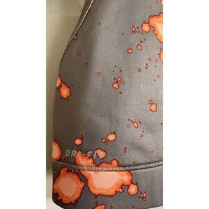 This Nike Dri-Fit Women's Sports Bra is a size Small in a stylish gray and orange color with a black Swoosh logo. Designed as a pullover style with a racerback strap, it offers medium support with wireless underwire. Made of a blend of polyester and spandex, this sports bra is machine washable and features a full cup coverage. Ideal for gym training or athleisure activities, it is part of the Nike Dri-FIT product line, known for its moisture-wicking properties and comfortable fit.