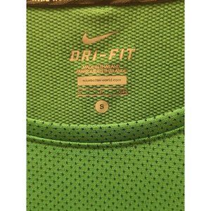 Show off your love for sports with the solid green color and sporty "Nike Dri-Fit" model name. This top is suitable for various activities such as running, cycling, training, yoga, and more. It would be perfect for a Christmas, Jingle Bell, or Saint Patrick's Day Run! It's a size small and in excellent pre-owned condition.