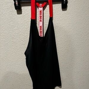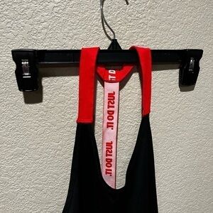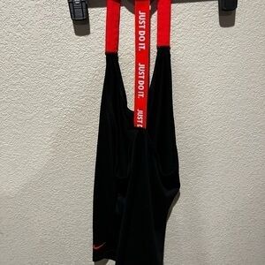 Nike Dri-fit Elastika Tank Top black and red Elastic straps at the back bring easy mobility to this tank top from Nike. The relaxed fit is in Dri-fit fabric for training comfort.