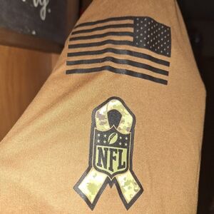 Show your support with this Nike Salute to the Service Dri-Fit Cleveland Browns brown t-shirt in a men's size large. Active, athletic, athleisure, sports, football, fanatic, casual, military, streetwear. Perfect for fans, this shirt combines comfort and style.