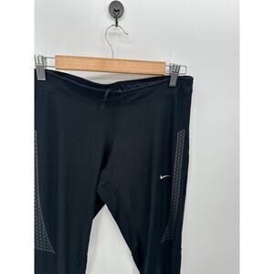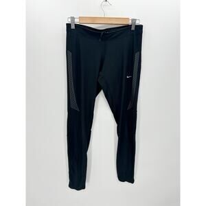 Nike Dri-fit Running Leggings Women Medium Black Zipper Training Pants