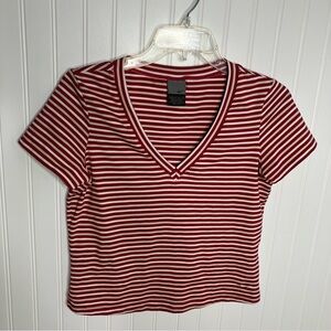 Nike Dri-fit Shirt Small Red Stripes V-neck Casual Gym
