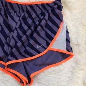 Nike Drifit Shorts. Purple and orange. Side panel vents. Unlined. Elastic waistband with drawstring. Lightweight. Excellent condition!
