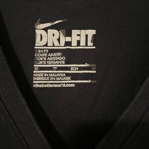 Nike Drifit Women’s Black V-Neck Victory Freak S/S Slim Fit T Shirt Size XS. Good Preowned with normal signs of use, no rip, tear, or foul odor. Please see pictures as they are a very important part of the description. Solid preowned condition.