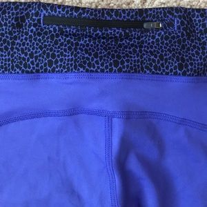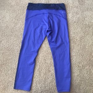 Nike crop pants, with “run” logo on front, size medium, purple, with light animal print. Perfect condition!
