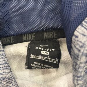 Blue Nike hoodie, dri-fit material. Size 4/5, it runs on the smaller side!