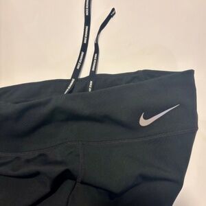Nike Dry fit black running tights with reflective stripes and zipper cuffs. Great leggings for running or weight workouts.