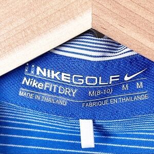 Nike Dry Fit Blue Striped Short Sleeves Golf Polo Size Medium