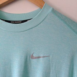 Brand new Nike Dry long sleeve mint buttery soft top with thumbs hole. It is great for running or a cool day. Size S but it is big for size small. I am XS and S. I typically wear XS for Nike but sometimes S, so I was surprised for S it was big for me. This is good for someone S or between S and M. I never found the time to return it. I love the mint color and it is one of Nike's staple colors and it is super soft!