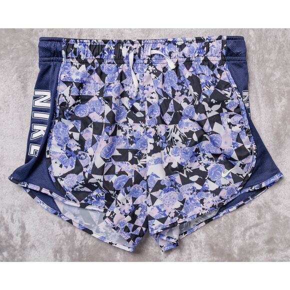 Nike Dry Fit Tempo Lined Running Shorts Purple Flowers Navy Blue Womens Size L