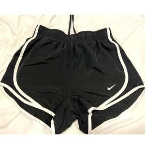Nike Dry-FIT Black Tempo Track Brief Lined Athletic Running Shorts Size XS. Black color with white piping details. Pull on style shorts with an elastic waistband, internal, drawcord, embroidered swoosh logo, and built-in brief liner. Light and smooth, the Nike Tempo Shorts give you comfortable coverage for your run. Their classic design features curved side panels made of mesh to help you stay cool and move freely.