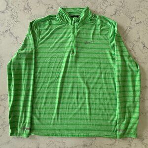 Nike Dry-Fit Green Element Stripe 1/2-Zip Running Pull Over - Mens XL