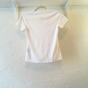 White Nike Dry-Fit T-shirt. Made with moisture wicking polyester. Size: Girls L.