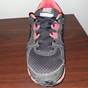 This is a pair of Nike Dual Fusion ST2 black and pink athletic shoes in a womens size 11. They are pre-loved and showing minimal wear (see pics). Athletic, athleisure, sporty, running, jogging, cross training, workout shoes.
