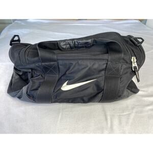Nike Duffle Bag 20x11x9 Black with white swoosh, Small Bag, Shoe Pocket Big Zip