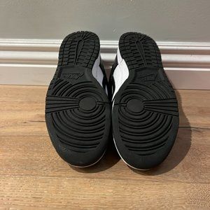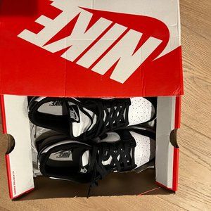 Preowned, worn several times Size 9 1/2 Black and White Nike Panda Dunk Low Retro Sneaker. In great condition, very little wear on bottom of shoe. Box included but the top is detached.