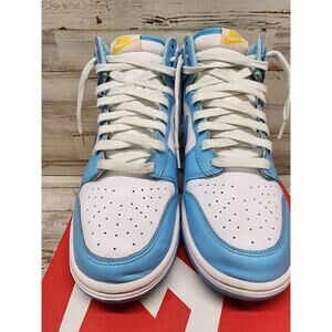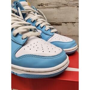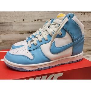 The Nike Dunk High Blue Chill Men's Size 8 DD1399-401 is a stylish and sporty sneaker designed for men. This high-top shoe features a blue color scheme with white and amarillo accents, crafted with leather upper material for durability and comfort. Released in 2022 as part of the Nike Dunk collection, this athletic shoe combines style and performance, making it a versatile choice for everyday wear or sports activities. With its iconic design and quality construction, the Nike Dunk High Blue Chill is a trendy and practical addition to any sneaker collection.