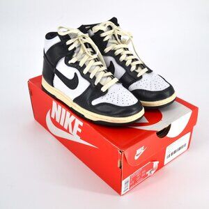 Nike Dunk High Sneaker Shoes Vintage Black White Leather DQ8581-100 Women's 7
