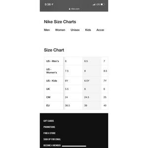 ️The shoes are a Kids 6Y. Kids 6Y is equal to a 7.5 Women. Size chart included in pictures.