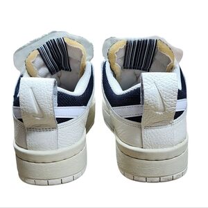 The midfoot, heel, as well as the forefoot of this Low Nike Dunk for women sneaker has leather material overlays in the off-white shade, while the underlays in-between them are dressed in a darker shade of the two. The laces semi-hidden profile Swooshes, as well as the collar lining are all white.The "NIKE" emblem and a barcode design can be seen on this pair of shoes.